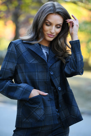 Take Your "Work to Weekend" Wardrobe to New Heights in Estelle & Finn's Plaid Jacket! This Timeless Navy/Grey Combination Works Back to Your Trousers for the Office or Head to the Hills and Pair with Jeans for an Elevated Weekend Vibe!