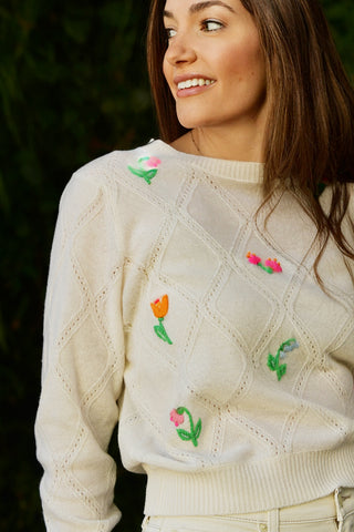 BRODIE FLORAL 🌸 WHITE CASHMERE SWEATER