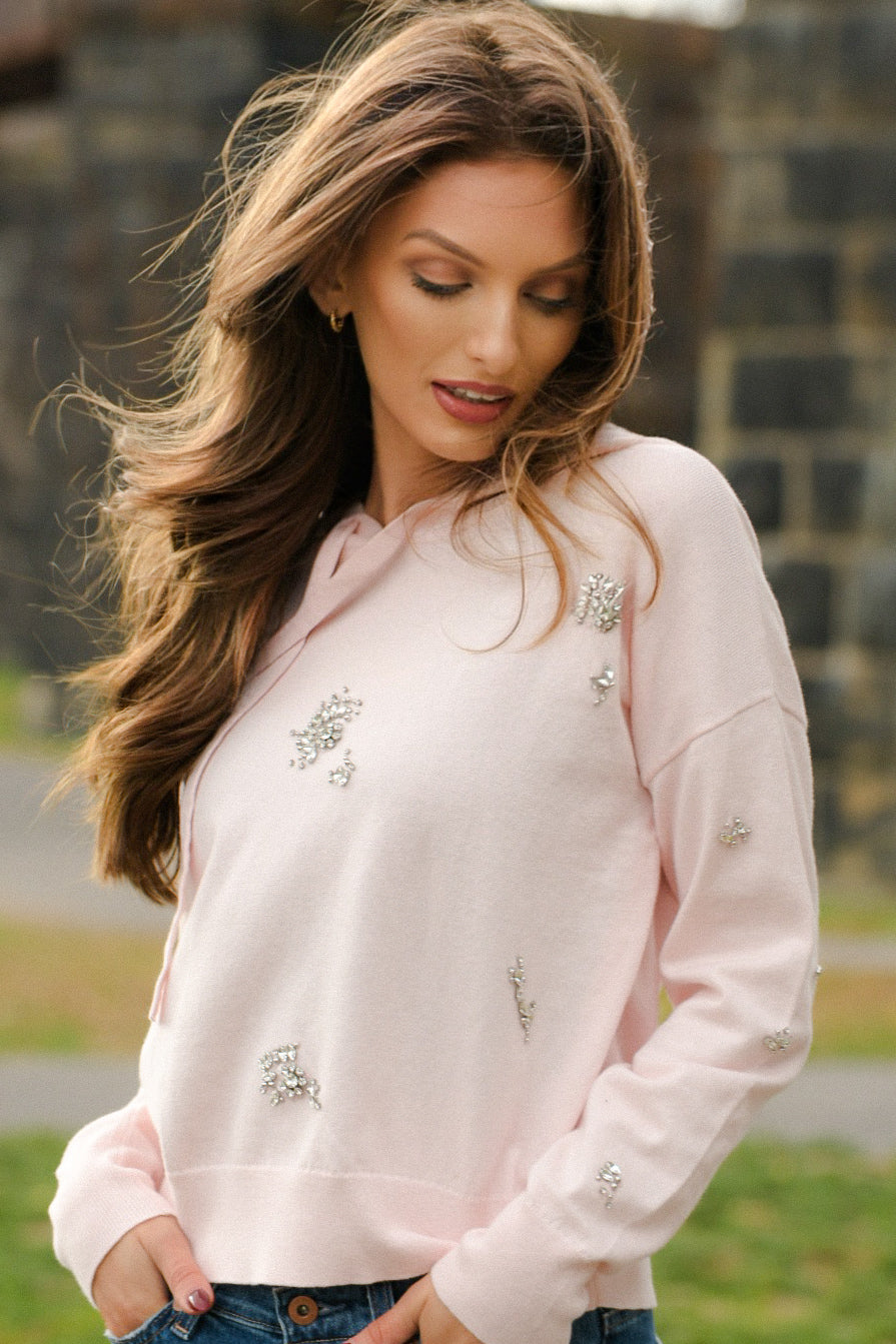 Embrace the Holiday Season Wearing J.Society's Blush Hoodie! This Bedazzled Powder Pink Cotton Offers a Playful Spirit with its Embellishment and Adds a Touch of Personality to Your Everyday Look! Pair with Denim to Elevate Your Casual Look for the Holidays!