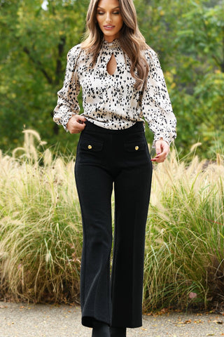 Step out in style with the CAMBIO PATCH POCKET BOUCLE PANT, featuring a fun ankle flare silhouette that adds a playful twist to your look. The textured boucle fabric offers cozy sophistication, while chic gold button hardware brings a touch of sparkle. Perfect for mixing comfort and flair, these pants are sure to brighten any outfit with their unique details.