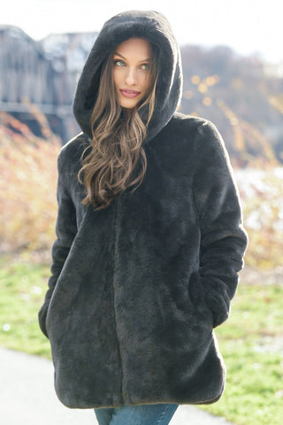 Save the Duck's Faux Fur Reversible Hooded Jacket Keeps You Warm without Weight! This Brown/Black, Sustainable Combo Adds a Sophisticated Touch in the Coziest Way!!!