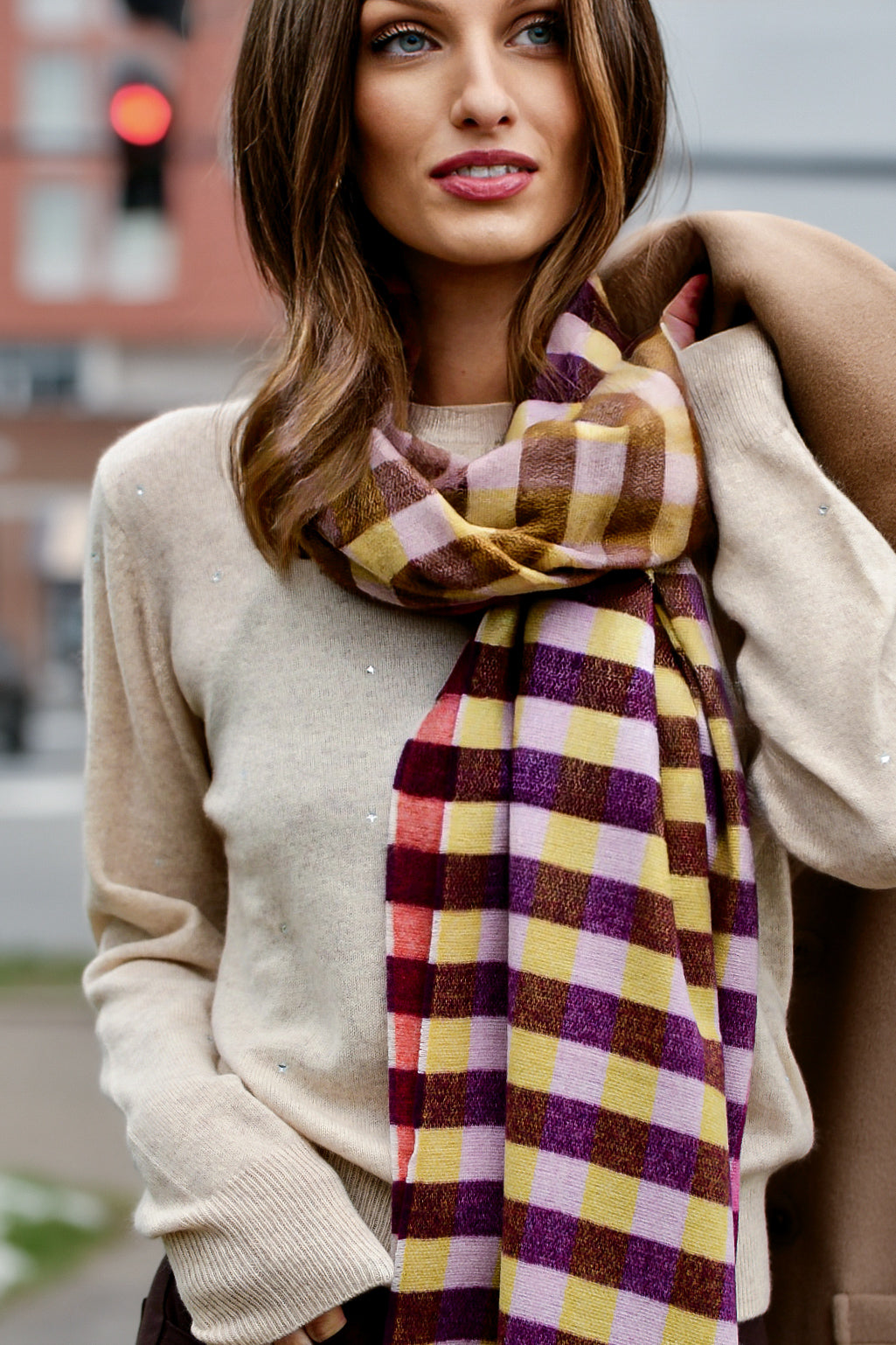 You're Born to Shine Wearing Brodie's Natural Cashmere Crew Neck Sweater Sprinkled with Diamond Stars! Pair Back to the Coordinating Duster and Peace of Cloth's Ivory Pull On Ponte Pant for a Holiday Tonal Touch!